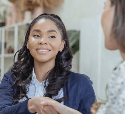 Friendly handshake between colleagues